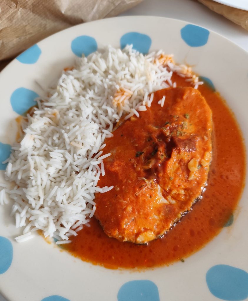 Servimos con un poco de arroz basmati/patatas cocidas/fritas …al gusto.